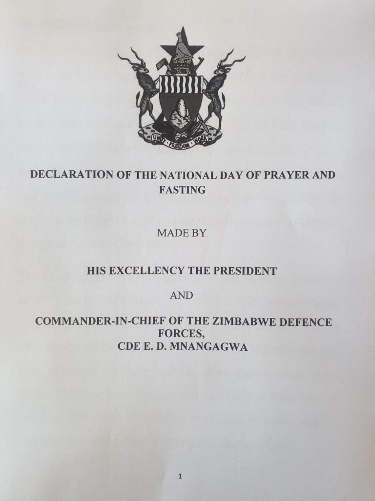 Read below; Declaration of The National Day of Prayer and Fasting made by His Excellency The President and Commander -In- Chief of The Zimbabwe Defence Forces, Cde E.D. Mnangagwa which 263Bulletin is publishing in its entirety: